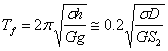 | 免震建物の周期 は、積層ゴムの水平剛性をせん断式( )で表すことで、次式のように積層ゴムの全ゴム層厚、ゴム材質及び面圧との関係で表すことができる。 |