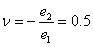 ここで、ゴム製の立方体を1方向(x方向)に引っ張ることを考える。x方向には伸び(ひずみ度を )、それに直交するy, z方向は細くなる(ひずみ度をy, z方向ともに とする)。この時、変形前後で体積の変化がないとすれば、